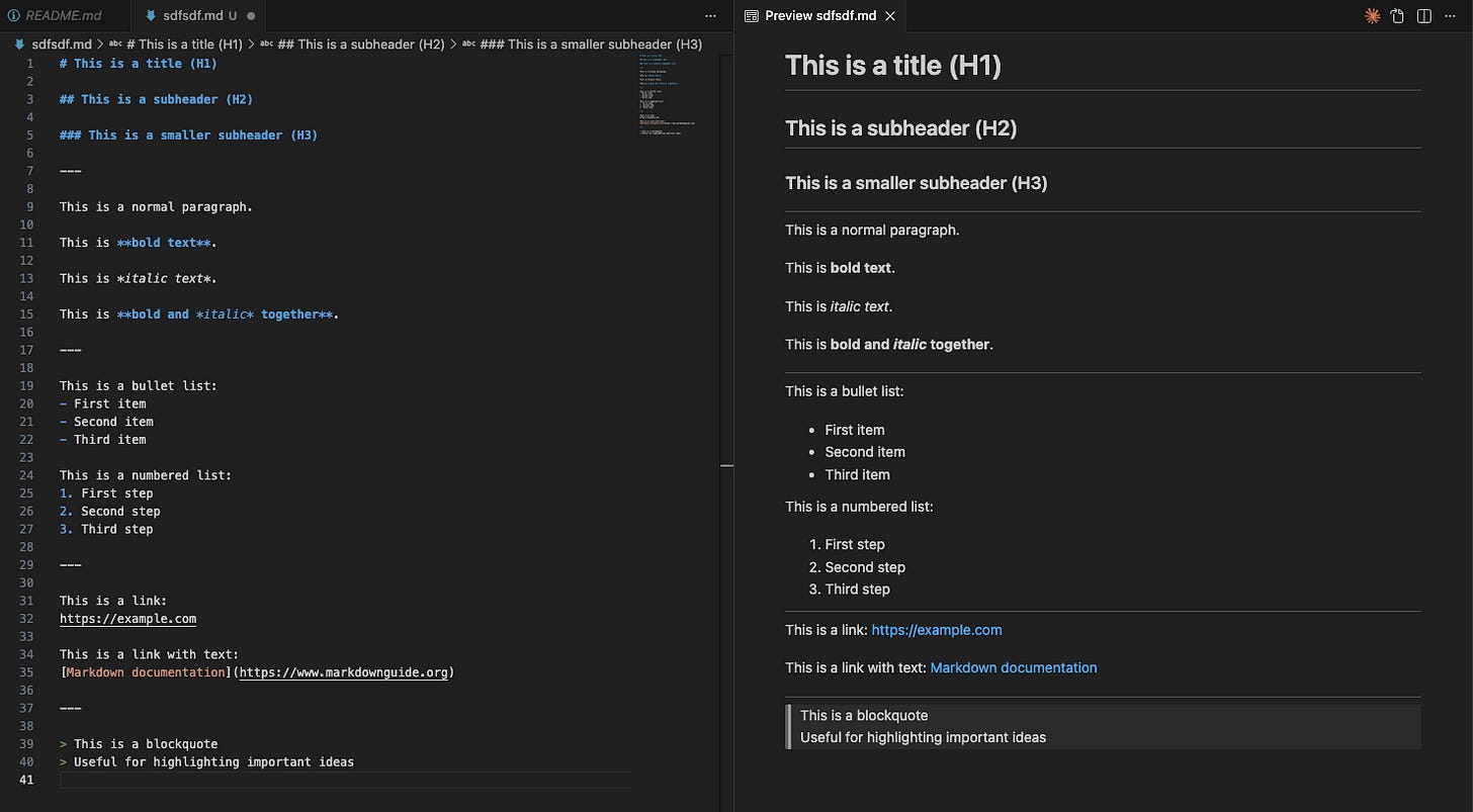 In other words, Markdown already encodes structure, and LLMs are very good at exploiting structure. This also makes the files pleasant for humans. You can read them as plain text, edit them in any IDE, and preview their rendered form side by side.